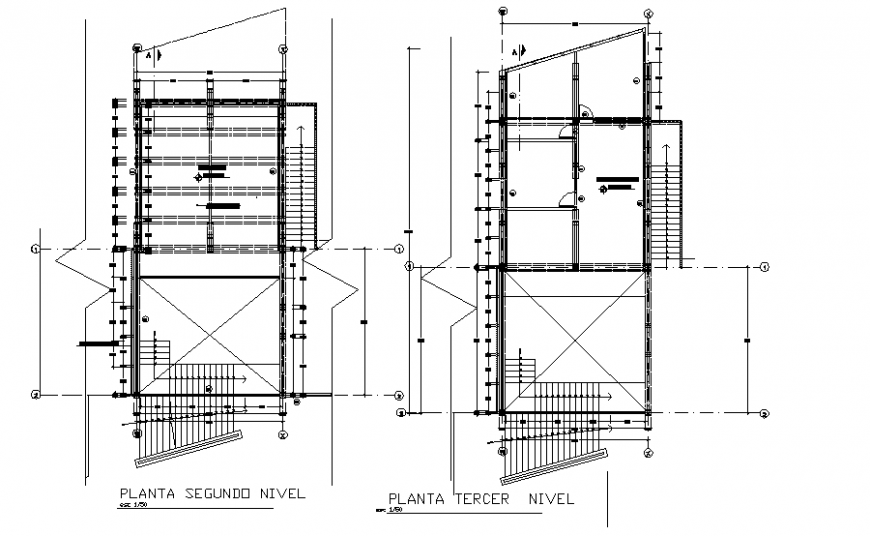 Second and terrace house level plan, centre lien plan detail, dimension detail, naming detail, scale 1:50 detail, stair detail, door and window numbering detail, cut out detail, section line detail, etc.