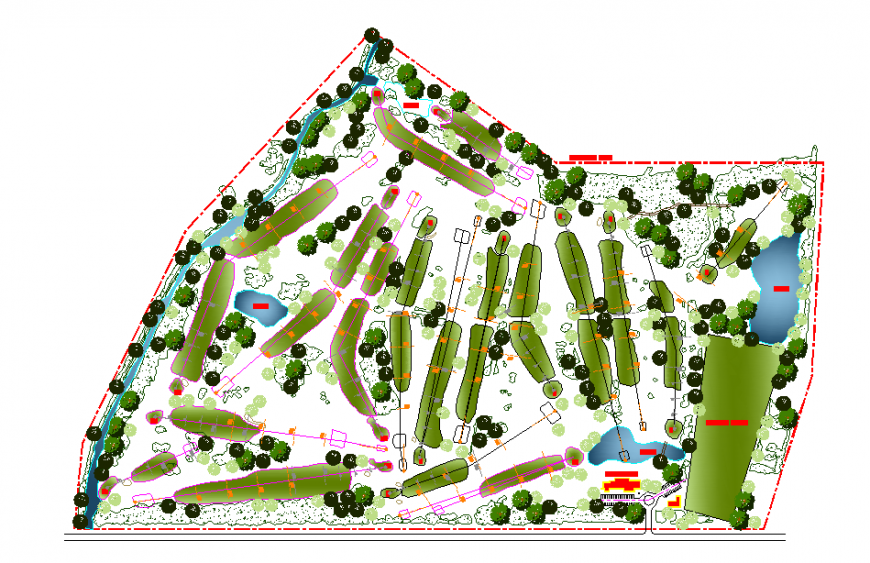 HOTEL & GARDEN PLAN LAY-OUT DETAIL, ALL ROUND SIDE DIMENSION DETAIL, CLUBHOUSE, DRIVING RANGE, POND, BOUNDARY LINE, ETC DETAIL.
