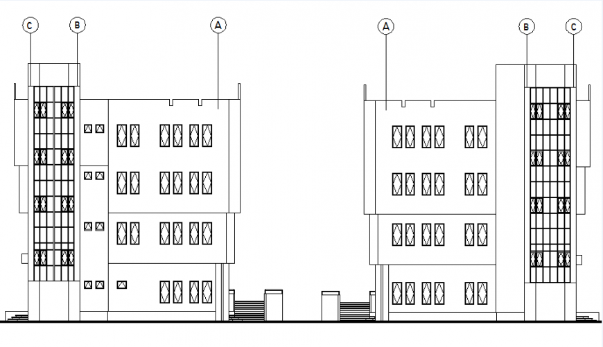 Elevation flat plan, centre lien detail, stair detail, furniture detail in door and window detail, hatching detail, left elevation detail, right elevation detail, projection detail, etc.