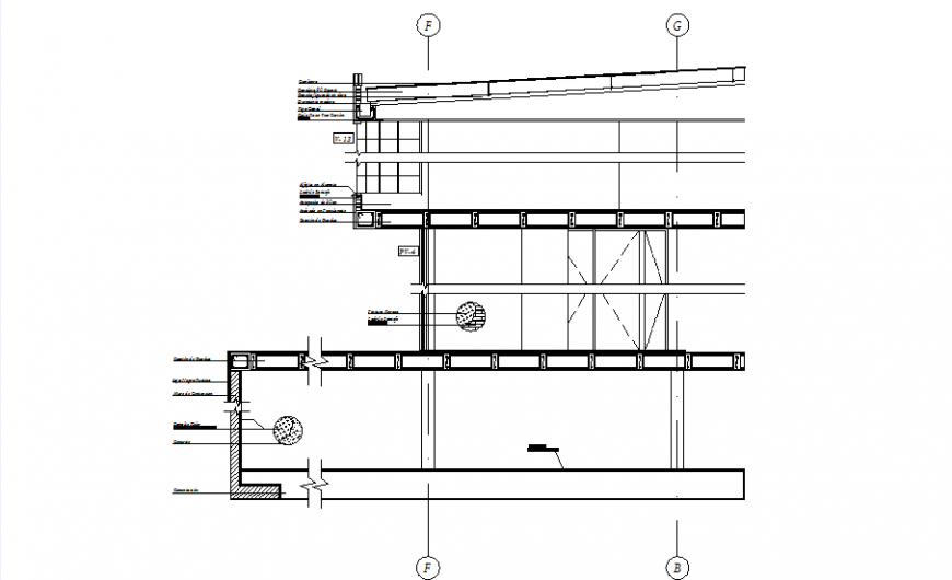 Front court with detail, centre line plan detail, cut out detail, hidden line detail, reinforcement detail, naming detail, hatching detail, etc.