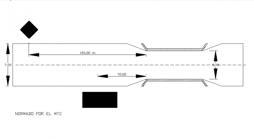 Orifice channel front elevation plan, dimension detail, hatching detail, hidden line detail, etc.