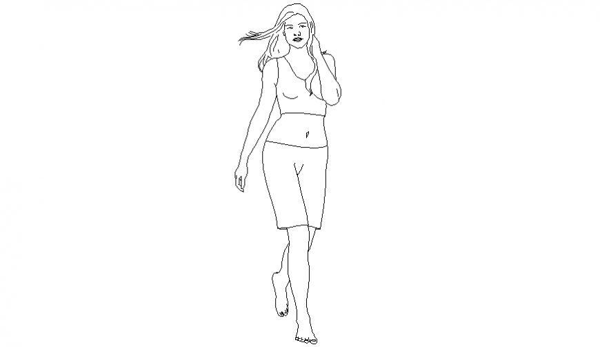 Modern girl block in AutoCAD dwg file with walking position in style of hair and hand support with walking girl position in block of people in design.