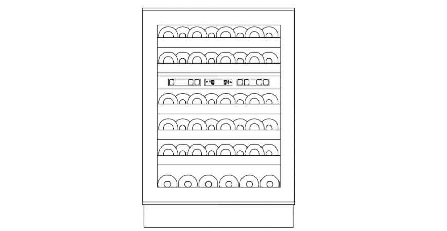 Wine cooler front elevation detail, complete furniture details are show , front view detailing dwg file