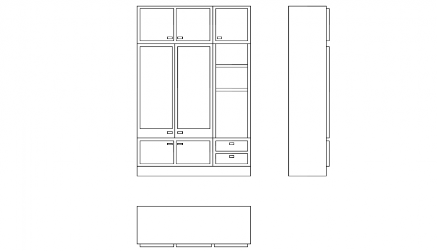 The Front Elevation of a Wardrobe AutoCAD DWG file presents a detailed front view of a wardrobe unit, including doors, drawers, and internal shelving. It provides precise dimensions and structural details, making it ideal for architects, interior designers, and furniture manufacturers. This drawing helps in accurate planning, customization, and implementation of wardrobe designs in both residential and commercial projects, ensuring functional and visually appealing storage solutions.