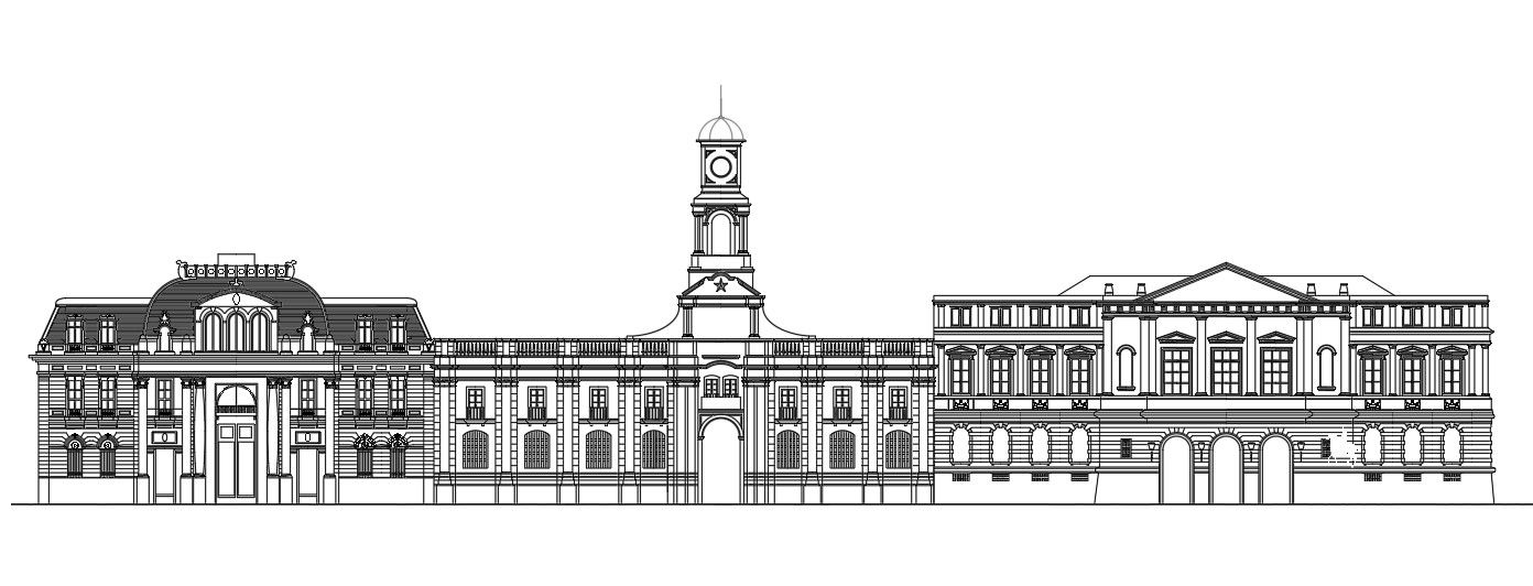 Palace Design In DWG File which shows the front design of the royal palace.