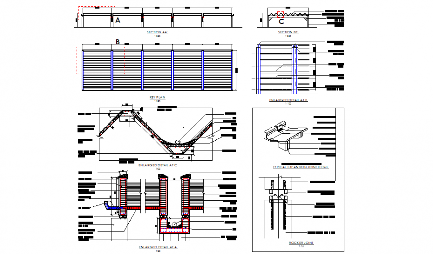Section lift plan, dimension detail, naming detail, hatching detail, reinforcement detail, bolt nut detail, hatching detail, hidden lien detail, isometric view detail, etc.