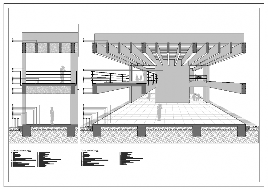Fugitive cut detail elevation layout file, people detail, perspective view dteail, slab detail, foundation detail, specification detail, court building detail, concreting detail, hatching detail, balcony detail, etc.