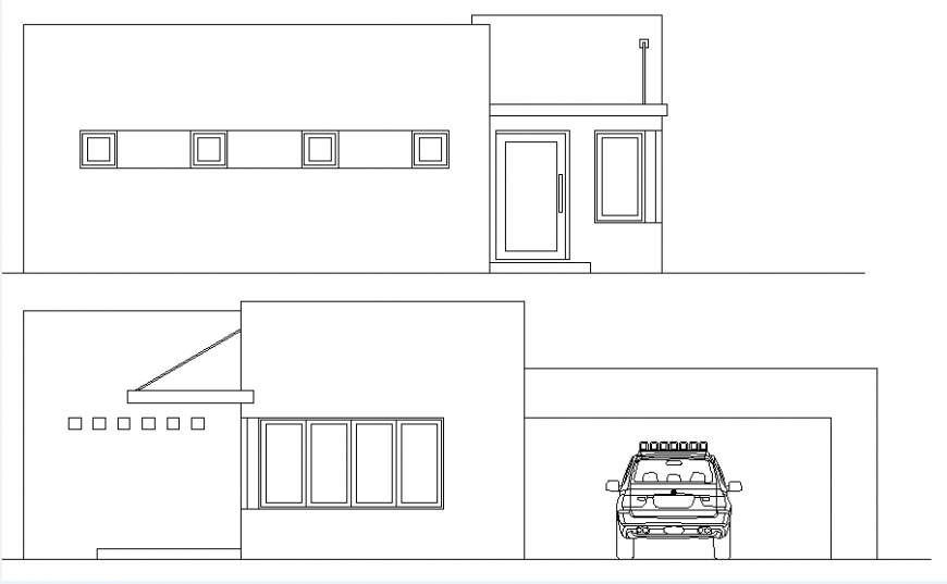 Elevation police station plan layout file, front elevation detail, car parking detail, projection detail, furniture detail in door and window detail, column elevation detail, etc.