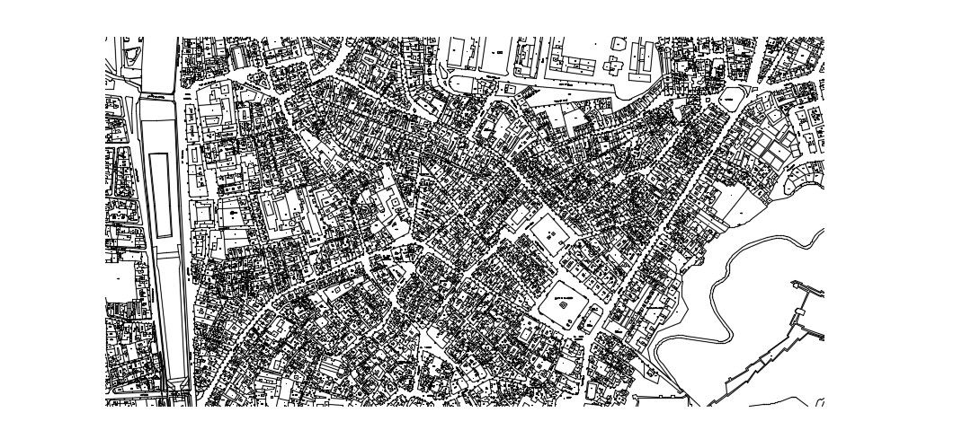 Town Planning In DWG File which shows plan of complexes, offices, houses, gardens, bus stations, roads, bridges.