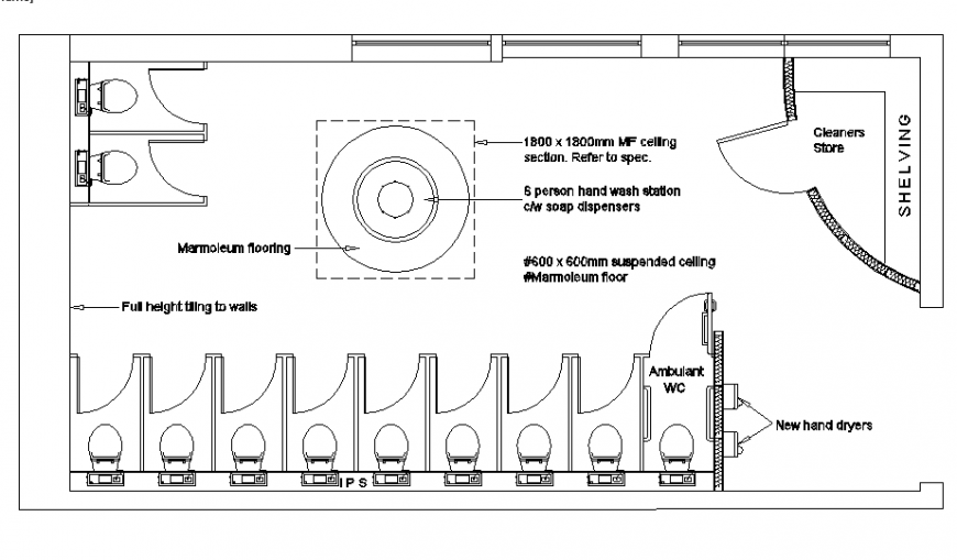Public toilet refurbishment design dwg file, furniture detail in door and window detail, naming detail, water closed detail, sink detail, handle detail, etc.