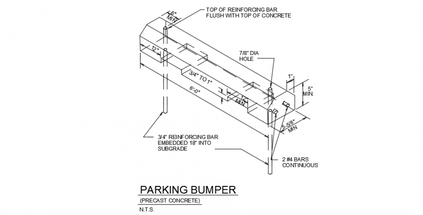 Parking bumper wheel stop dwg file, here there is sectional detail of a parking bumper details , in auto cad format
