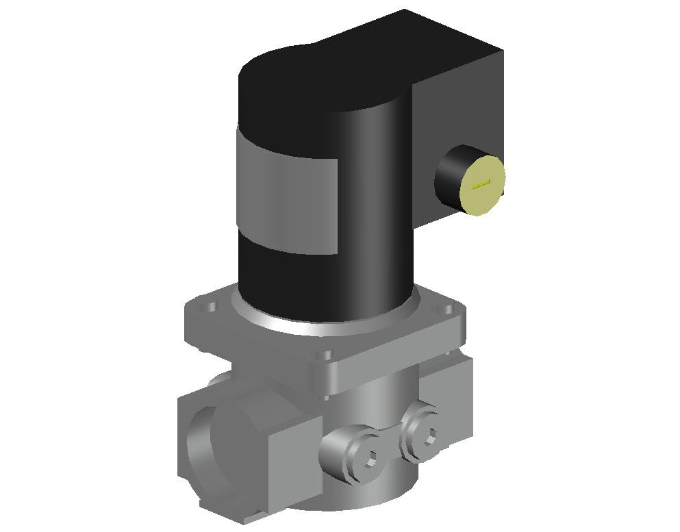 Download Free Valve 3D In DWG File which shows 3d drawing of the gas solenoid valve with an isometric view and hatching.