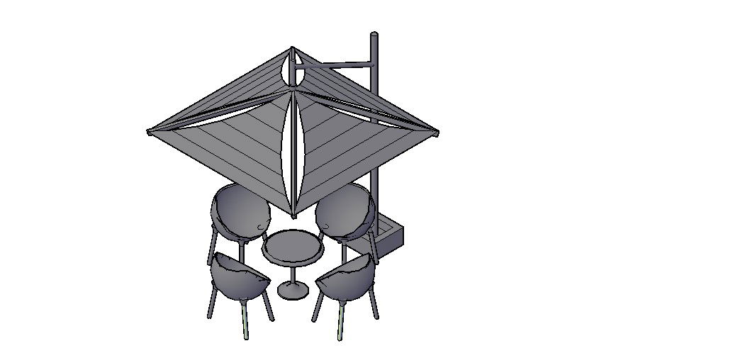 Modern Table 3D Model In DWG File which shows 3d drawing of modern table with chairs with an isometric view and hatching.