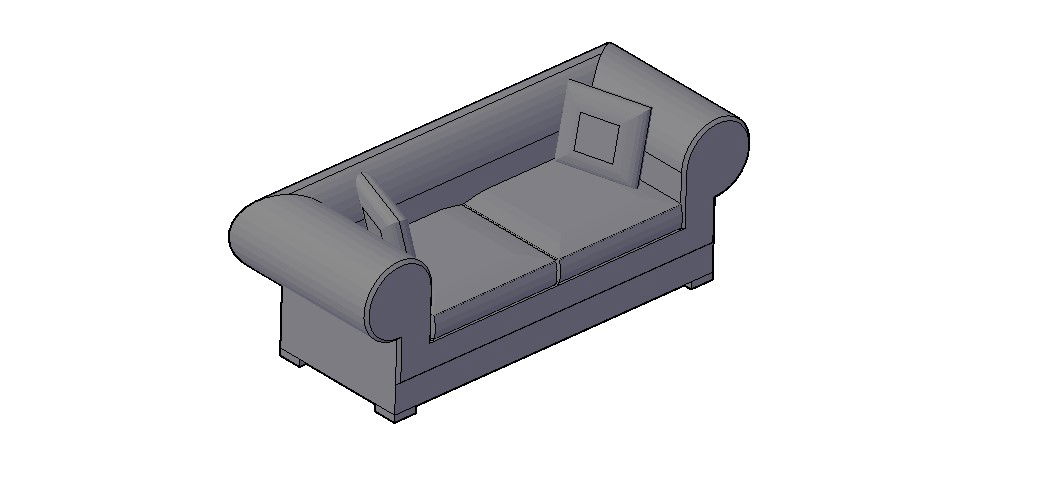 Sofa 3D Model In DWG File which shows 3d drawing of modern sofa with an isometric view and hatching.