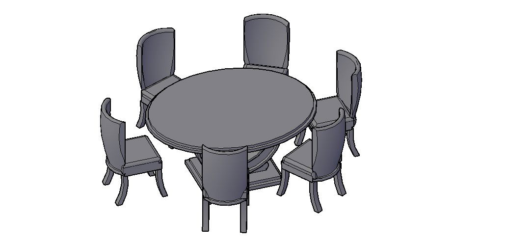 Dining Table 3D Model In AutoCAD File which shows 3d drawing of dining table with 6 chairs in roud shape with an isometric view and hatching.