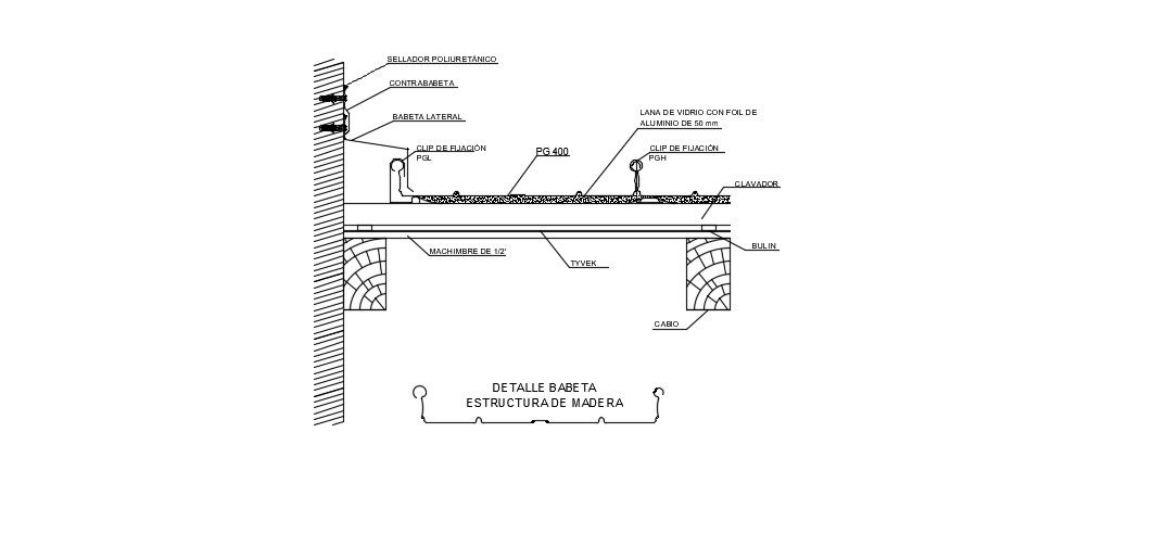 Wooden Structure.Details In DWG File which shows Glass Wool With Foil Aluminium 50 mm, Detail of Wooden Structure Design, Fixing Clip, Side stand.