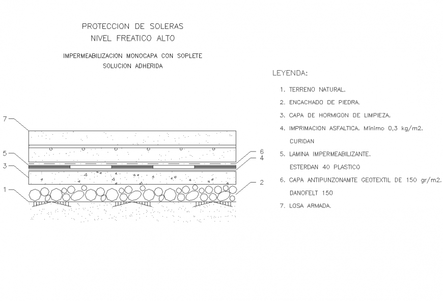Reserves protection section plan dwg file, legend detail, numbering detail, layer wise detail, concrete mortar detail, stone detail, soil detail, etc.