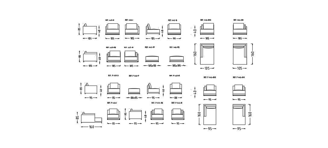 Bed Section Detail In DWG File which shows different elevations and sections of beds with detail dimensions.