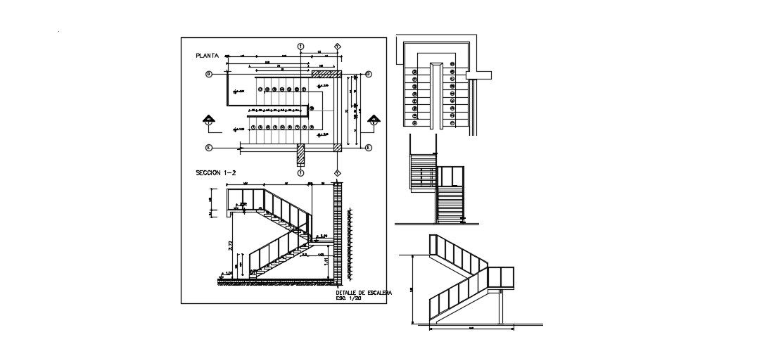 Stair Section Detail In DWG File which shows width, the height of the staircase, It also includes detail dimensions of railing, wooden and steel frame details.