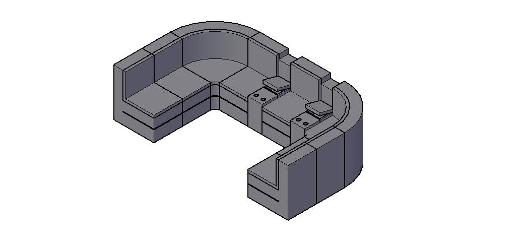 Modern Sofa 3D Model Free Download In DWG File which shows modern 3d drawing of sofa with an isometric view and hatching.
