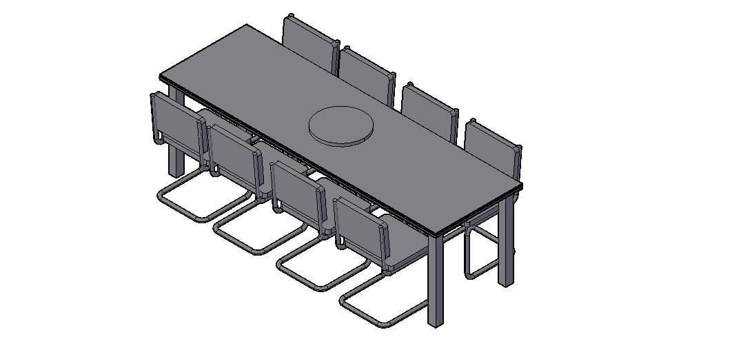 Conference Table 3D Model In DWG File which shows 3d drawing of 8 seater office conference table with an isometric view and hatching.