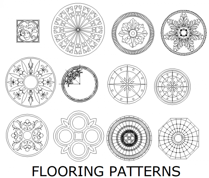 Flooring pattern tiles autocad file, flower design detail, round shape of floor design detail, arc shape of design detail, etc.