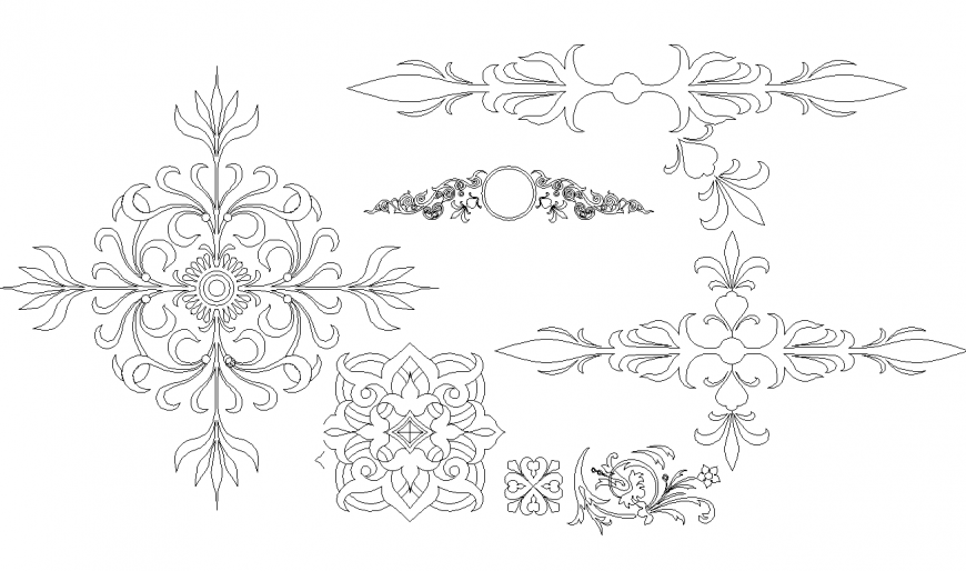 Wall design tiles detail dwg file, flower dhape tiles detail, cross line detail, etc.