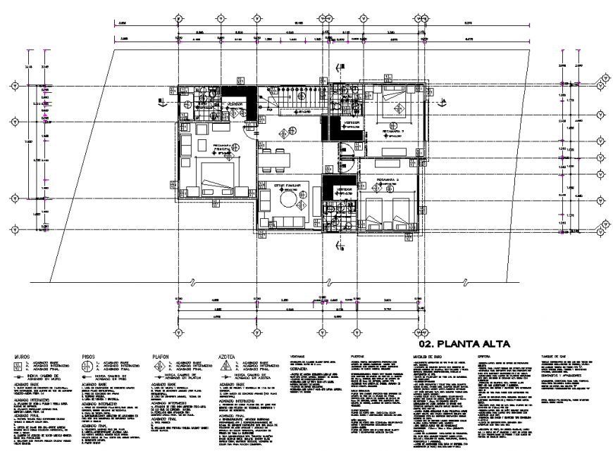 3 BHK house plan autocad file, centre line plan detail, dimension detail, naming detail, specification detail, section lien detail, furniture detail in door, window, cub board, bed, sofa, table and chair detail, tiles detail, etc.
