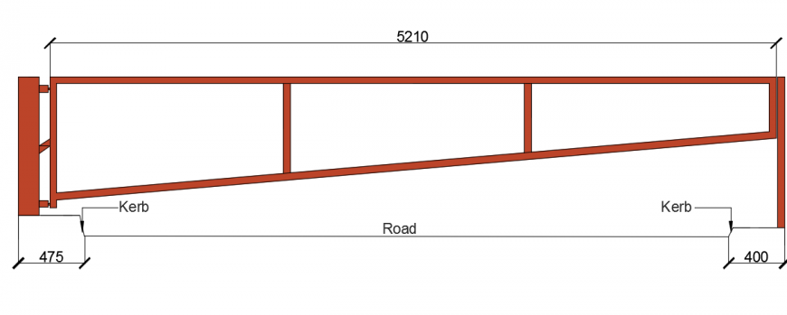 Road barrier gate sectional details,sectional details with text detailing, sectional details with measurement and text is shown