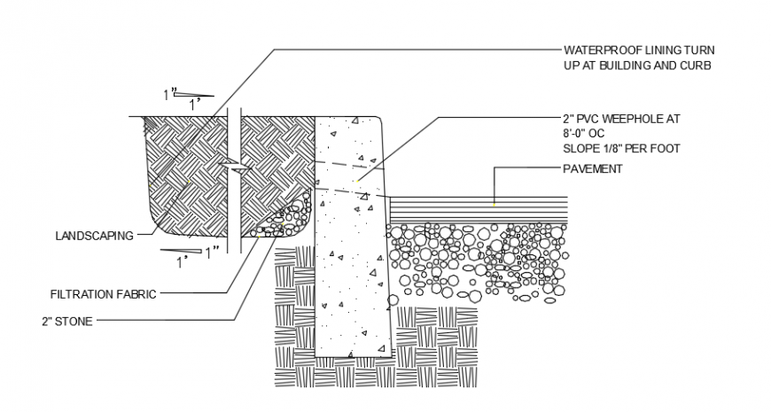 Curb sectional detail drawing details,depth sectional detailing, top view of a layout is shown , construction detail in auto cad format
