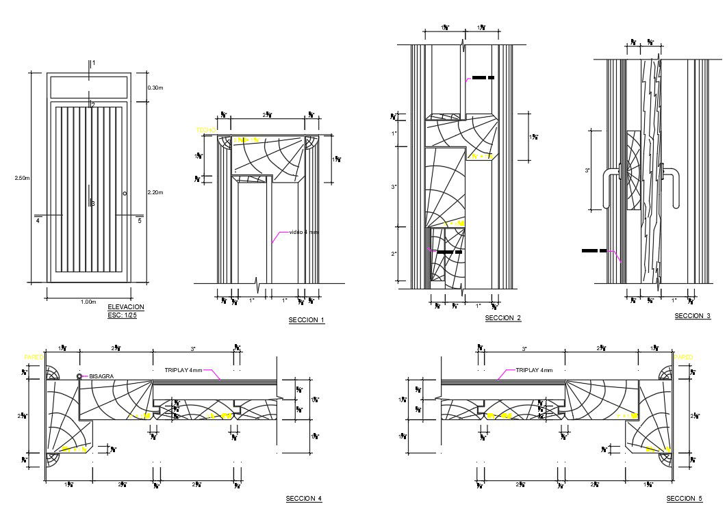 Door Frame Design , Wooden Door Section, And Elevation Detail With all Dimension Include drawing.