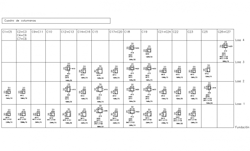 A Column section plan dwg file