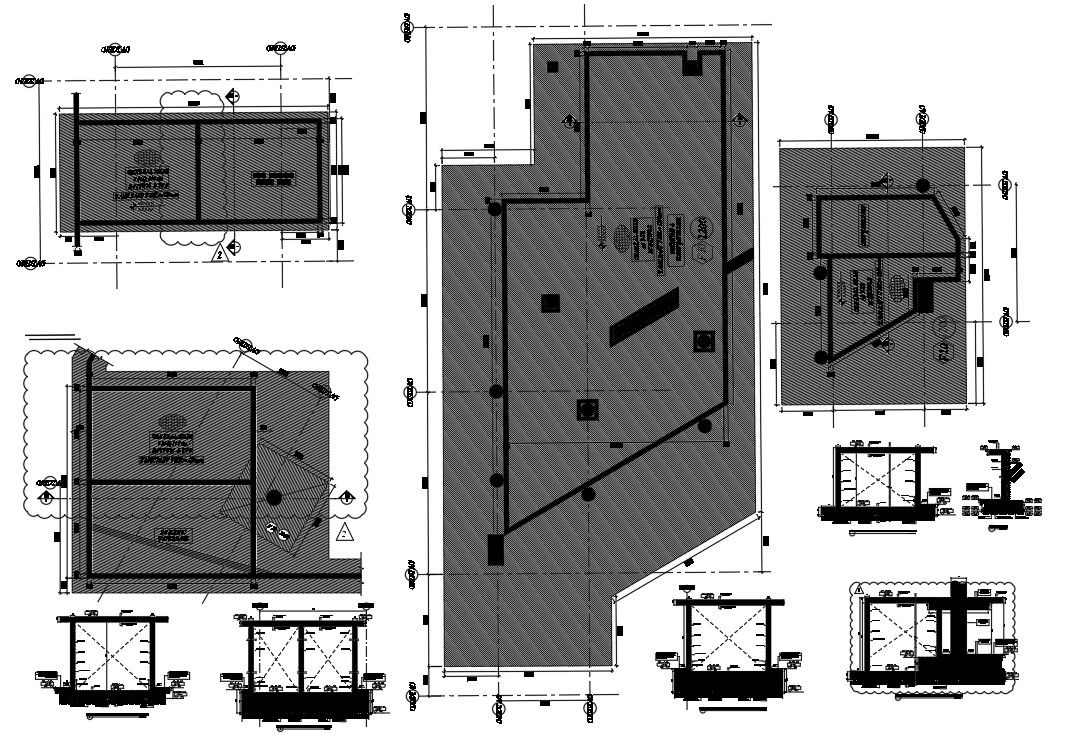 In this file detais in doomestic water tank , water stopper , section through fir fighting water tank, reinforcement as