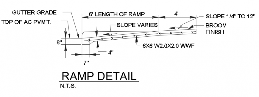 Road ramp detail sectional detail,Sectional details with text detailing, sectional details with measurement and text is shown
