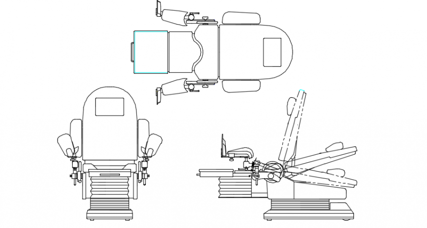 Gynecological chair model detailing,here there is top view detail of chair , top view and back view and complete detailing of a chair is shown