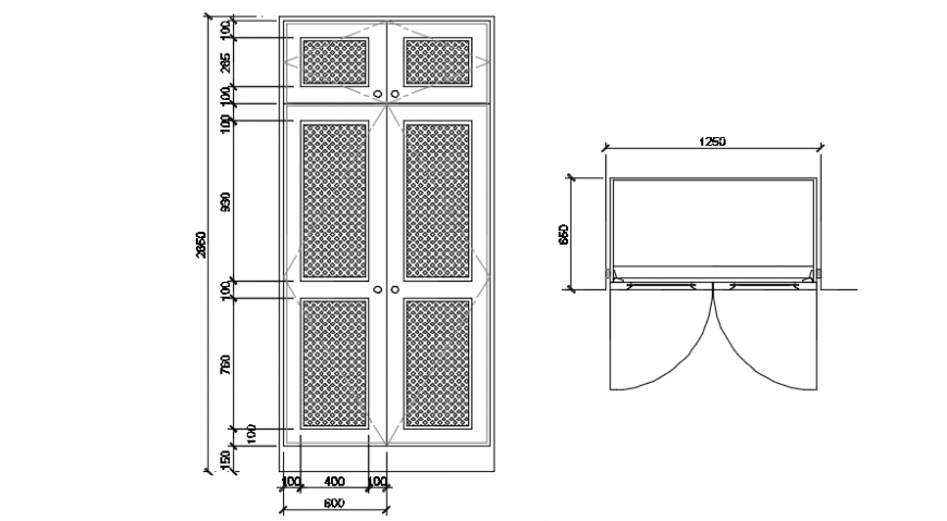 Wardrobe design plan and elevations,here there is 2d detailing of a wardrobe, plan detailing of a door shutter