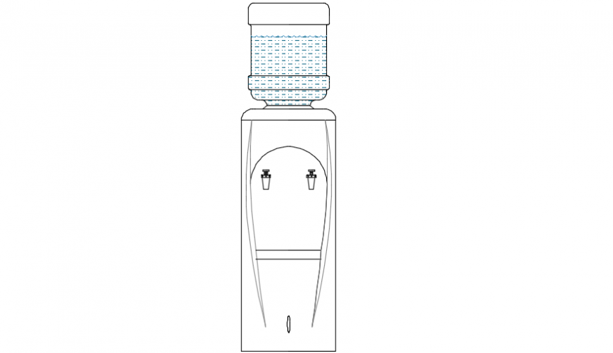 Water cooler elevation front model detail,here there is 2d detailing of a water cooling machine ,water purifier model front detailing