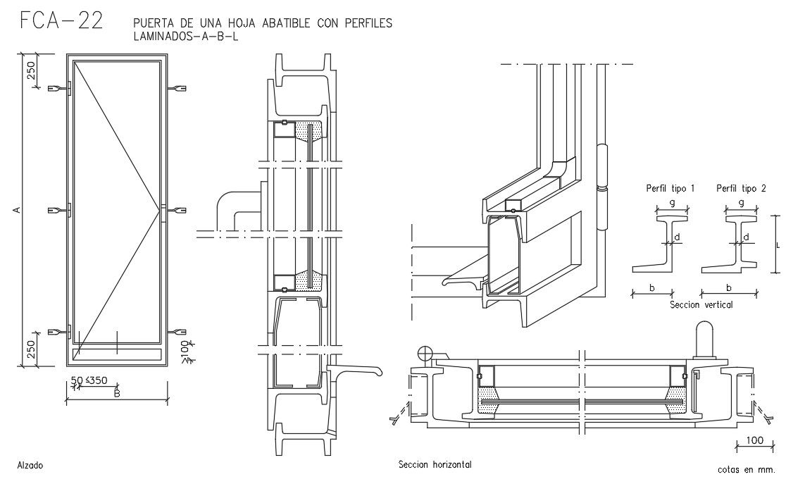 All Door Side Elevation And Section Detail, Folding Door Of a Sheet With Profiles, horizontal section Detail include autocad file.