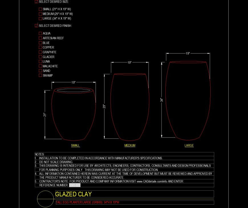 Tall leg planter in dwg file. detail drawing of tall leg planter ,three types, small, medium and large type pot with details and dimensions.