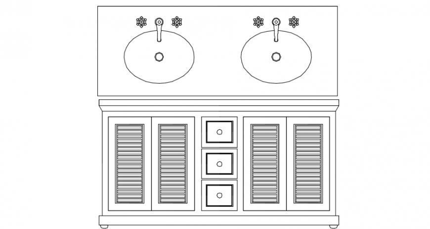 Traditional vanity basin elevation model,complete furniture details are show , front view detailing dwg file, mirror and cabinet details