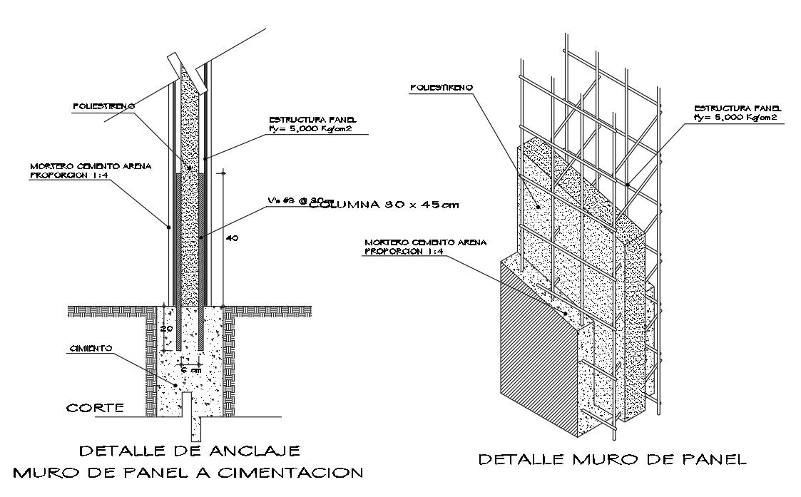 Section And All Dimension Design. Anchore Detail, Wall Foundation Panel Section, Cement mortar Include.