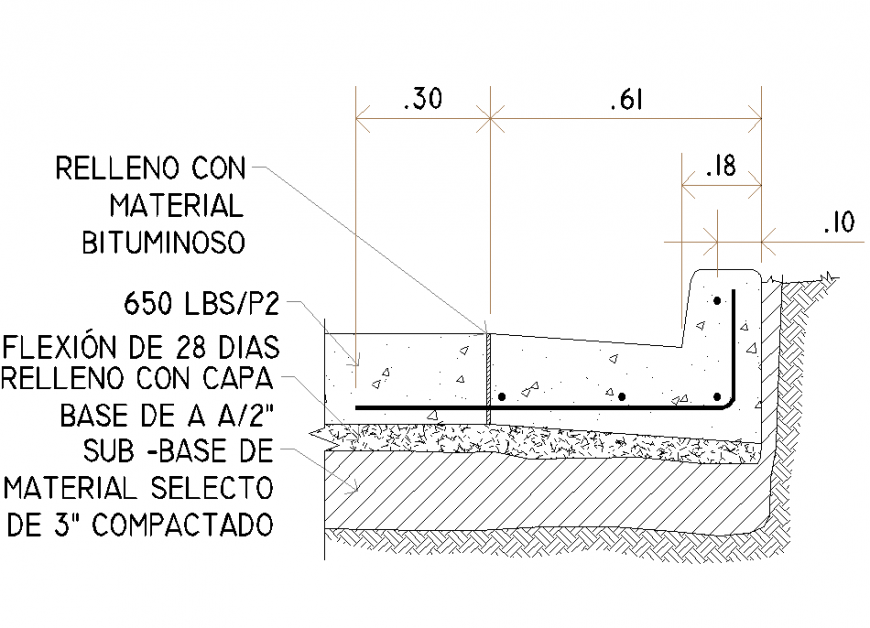 Curb section plan layout file, dimension detail, naming detail, concrete mortar detail, soil detail, hatching detail, reinforcement detail, bolt nut detail, etc.