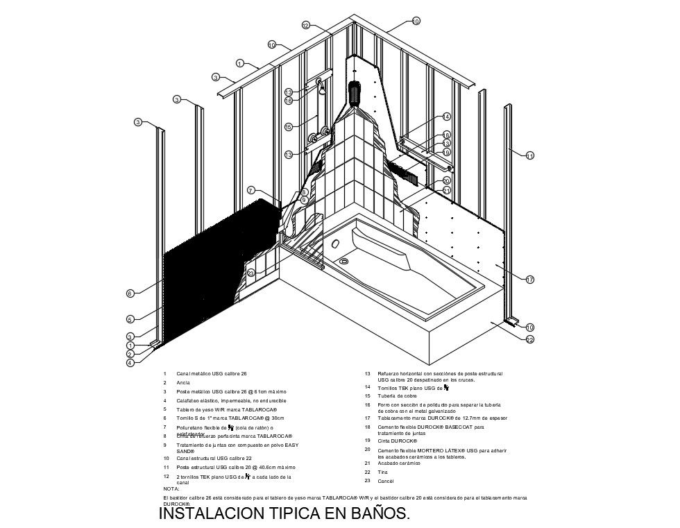 Construction Bathroom Section. Typical installation in bathrooms, horizontal reinforcement with structural pole sections USG 20 gauge