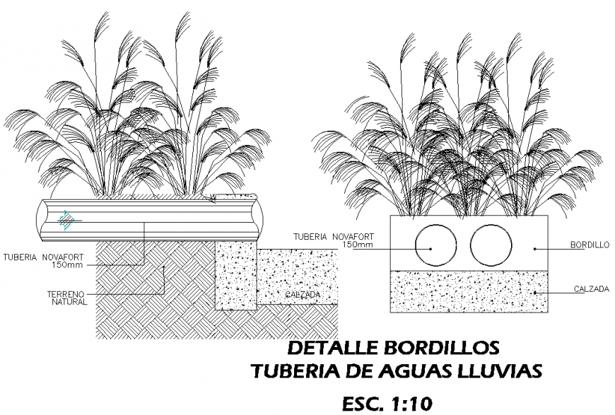 Curb detail plan dwg file. The plan with detailing of beams, columns, elevations, sections, etc.,