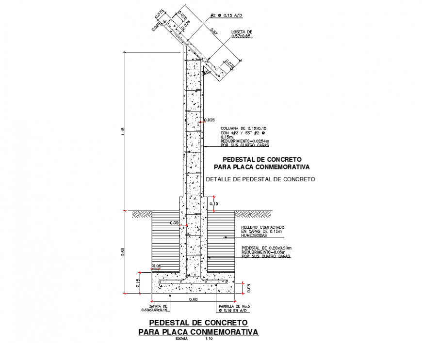 Pedestal plan detail dwg file. The elevation plan with detailing of structure, metal rods, base, building, etc.,