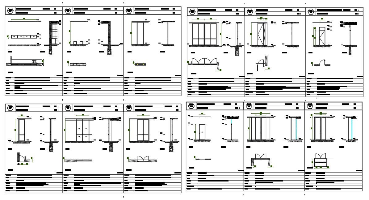 sliding window, Fixed glazing panel, Open Door Detail. Exterior And Interior Detail with dimension and Elevation and section include.