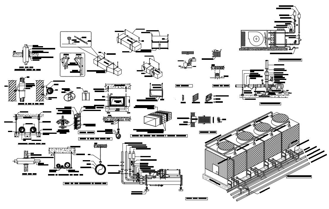 shaft, concrete plinth, chiller piping connection,galvanized steel closure strips.