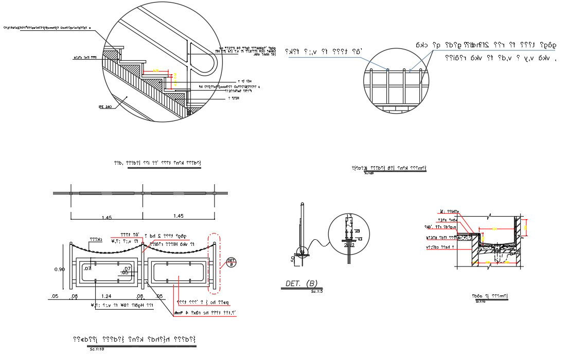Structure details providing a stairway details, rearing details , section plan, foundation details , steel details ,