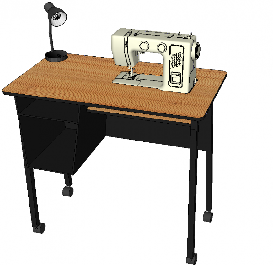 Sewing plan detail dwg file. The 3D plan with detailing of sewing machine, with textures, detailing of light, etc.,