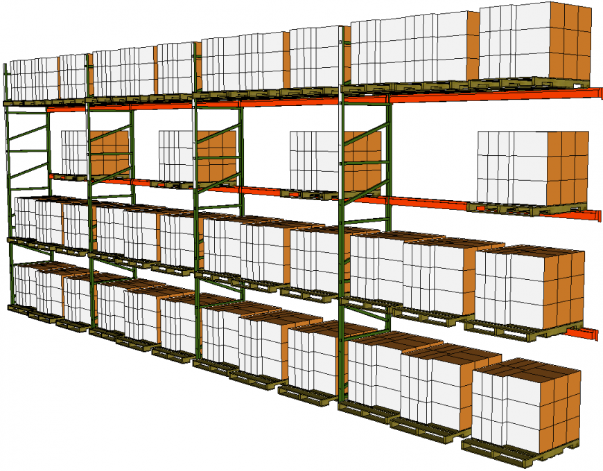 Pallet rack plan detail dwg file. The 3d plan with detailing of metal rods, racks, steel, etc., The height is given for the usages of many things.